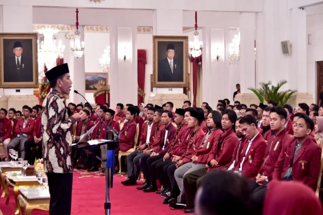 Jakarta, 6 Agustus 2018. Presiden Joko Widodo menerima 213 mahasiswa yang tergabung dalam Ikatan Mahasiswa Muhammadiyah (IMM) di Istana Negara Jakarta, Senin, 6 Agustus 2018. Dalam pertemuan...