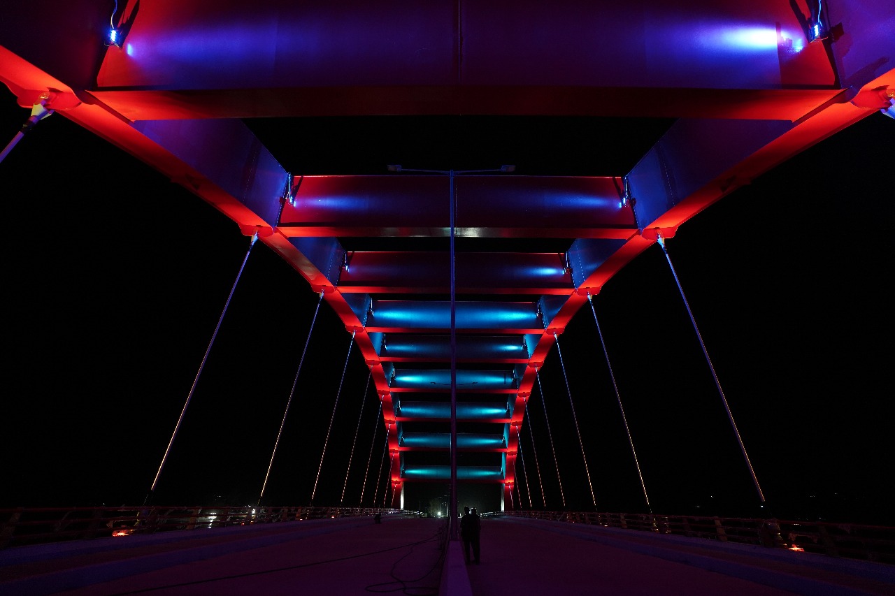 Rencananya, jembatan dengan investasi Rp 1,7 triliun ini bakal diresmikan Maret mendatang. Kami melihat langsung pengerjaan bangunan monumental ini pada pekan kedua Februari lalu. Sejumlah pekerja sibuk memberesi pernak-pernik seperti lampu dan cat. “Kalau cuaca cerah, kami bisa bekerja hingga malam,” ujar Duduh, bagian art lighting jembatan, Rabu, 13 Februari 2019.