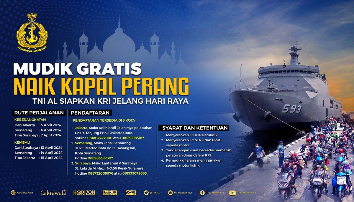 SEPUTAR KABINET - Bagi Anda warga Jakarta dan sekitarnya yang tidak mendapat tiket mudik di tahun 2024, untuk pulang kampung tak perlu khawatir. Tentara Nasional Indonesia Angkatan Laut (TNI AL)...