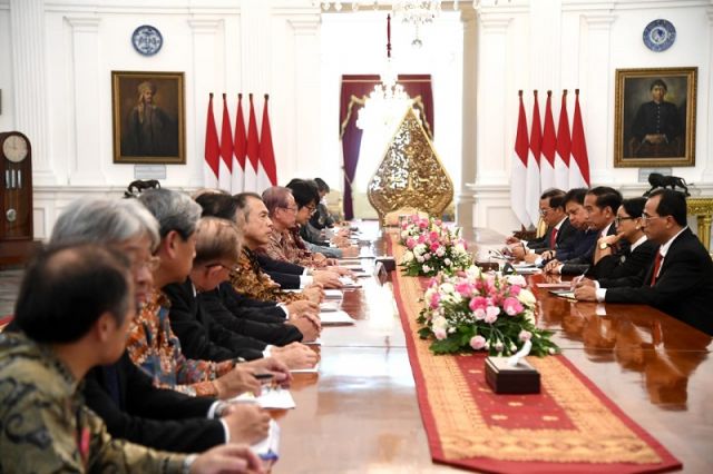 Presiden Joko Widodo menerima delegasi bisnis Jepang yang tergabung dalam Japan Indonesia Association (Japinda) yang dipimpin oleh Mantan Perdana Menteri Jepang Fukuda Yasuo. Dalam pertemuan yang...