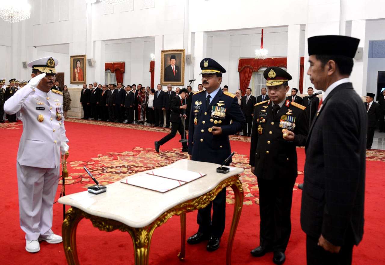 Presiden Joko Widodo melantik Laksamana Madya TNI Siwi Sukma Adji menjadi Kepala Staf TNI Angkatan Laut (KSAL) di Istana Negara, Rabu, 23 Mei 2018. Pelantikan Laksamana Madya TNI Siwi Sukma Adji...