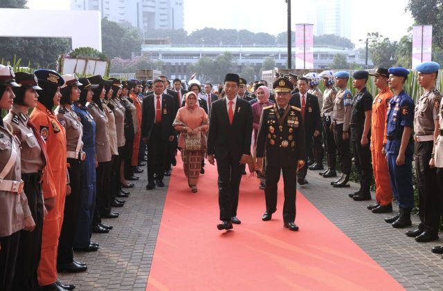 Di Hari Bhayangkara ke-72, Presiden Joko Widodo menyampaikan apresiasinya kepada anggota Kepolisian Negara Republik Indonesia atas kesungguhan yang selalu ditunjukkan saat menjalankan tugas di...