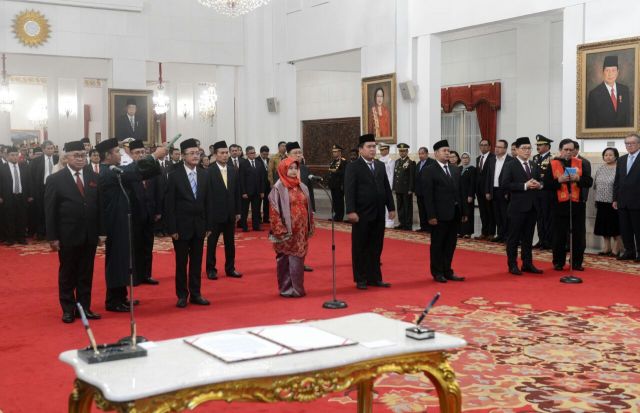 Presiden Joko Widodo melantik dan mengambil sumpah calon Duta Besar Luar Biasa dan Berkuasa Penuh Republik Indonesia untuk Republik Afrika Selatan, merangkap Kerajaan Lesotho, Kerajaan Swaziland dan...