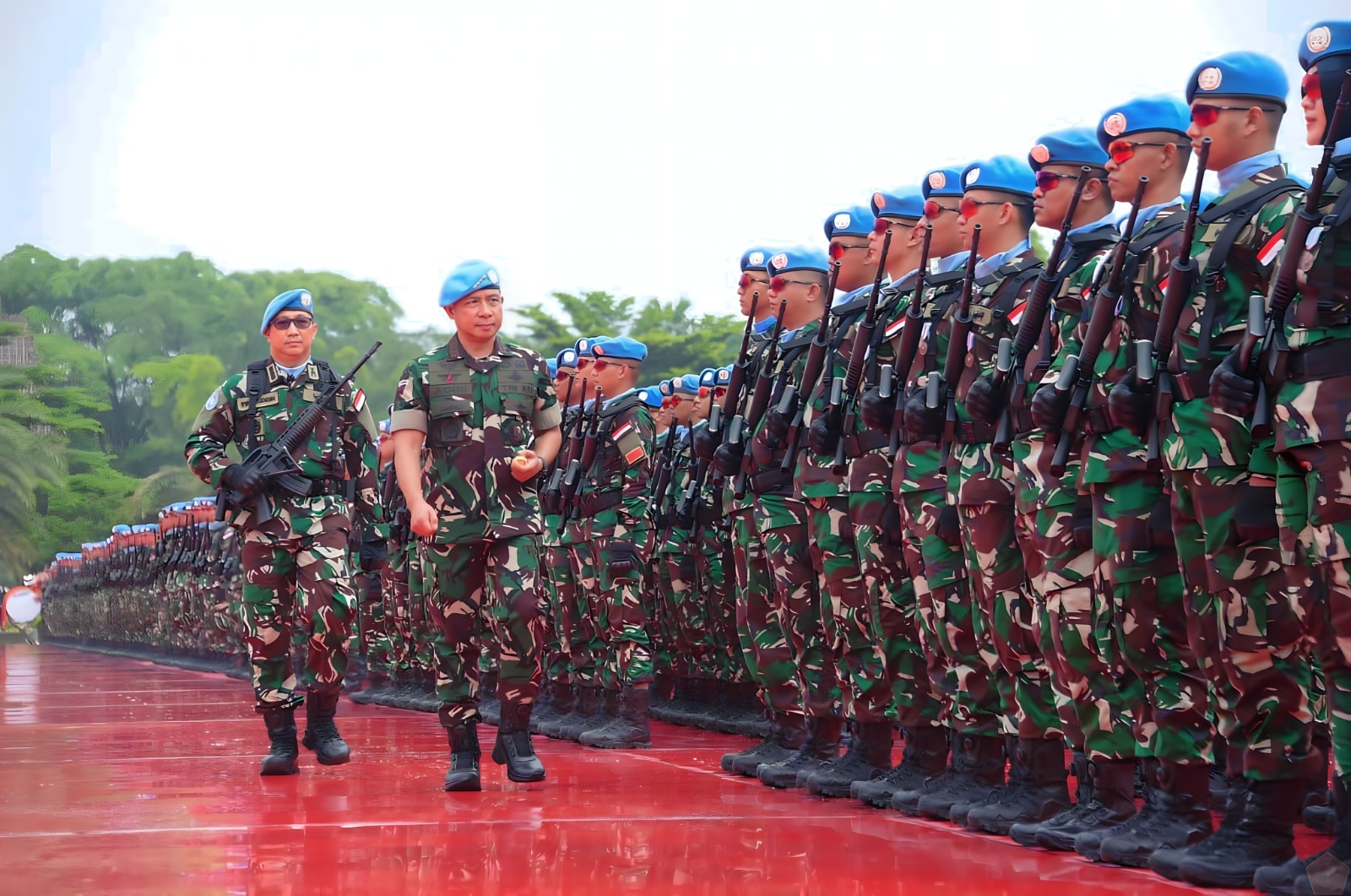 SEPUTAR KABINET - Panglima Tentara Nasional Indonesia (TNI), Jenderal TNI Agus Subiyanto, bertindak sebagai Inspektur Upacara Penyambutan Satuan Tugas (Satgas) Kontingen Garuda dan Milstaff Seceast...