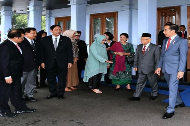 Presiden Joko Widodo beserta Ibu Negara Iriana Joko Widodo menyambut kunjungan kenegaraan Presiden Singapura Halimah Yacob beserta Bapak Mohamed Abdullah Alhabshee di Istana...