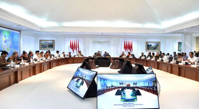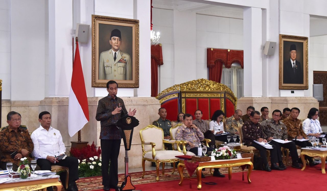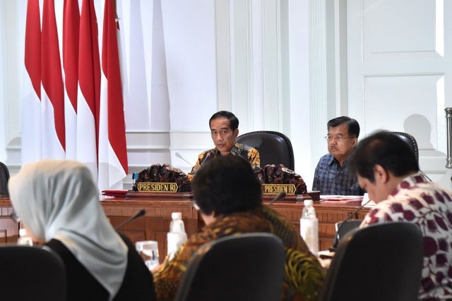Presiden Joko Widodo didampingi Wakil Presiden Jusuf Kalla menggelar sidang kabinet paripurna yang membahas tentang ketersediaan anggaran dan pagu indikatif serta prioritas nasional tahun 2019 di...
