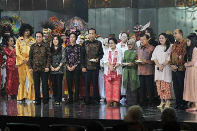 Presiden Joko Widodo menghadiri acara perayaan hari ulang tahun ke-72 Presiden ke-5 RI, Megawati Soekarnoputri. Acara ini digelar di Ballroom Puri Agung Hotel Grand Sahid Jaya, Jakarta, Rabu, 23...