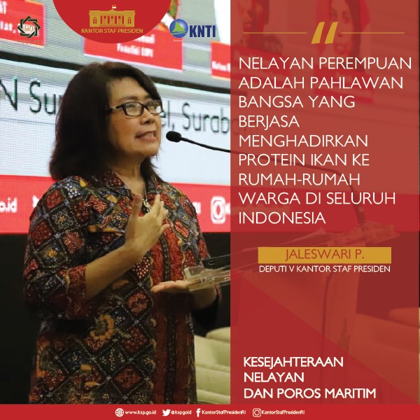 Pernyataan itu disampaikan Deputi V Kepala Staf Kepresidenan, Jaleswari Pramodhawardani saat melaksanakan kunjungan ke Kampung Nelayan Nambangan. Acara kunjungan ini dilanjutkan dengan audiensi dengan perempuan nelayan yang bertempat di Sentra Ikan Bulak, Surabaya, Kamis, 14 Februari 2019.